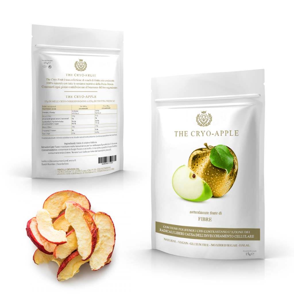 Mantenendo le loro caratteristiche nutrizionali inalterate i frutti crio-essiccati sono un aiuto pratico e facile per assumere le dosi quotidiane di vitamine, antiossidanti e minerali senza avere sempre a portata di mano la frutta fresca.